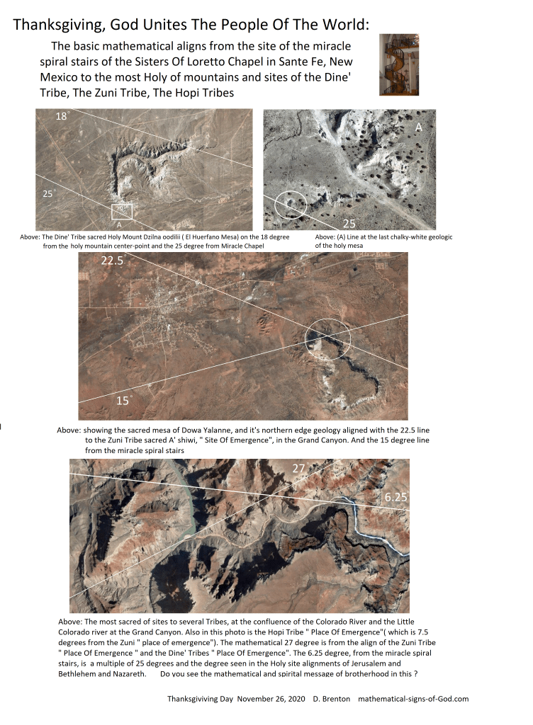 Thanksgiving Brotherhood, The Proof : Basic Math Aligns Of The Most Sacred Holy Sites Of The Hopi, Zuni, Dine’ Tribes To The Miracle Spiral Stairs Of The Sisters Of Loretto Chapel
