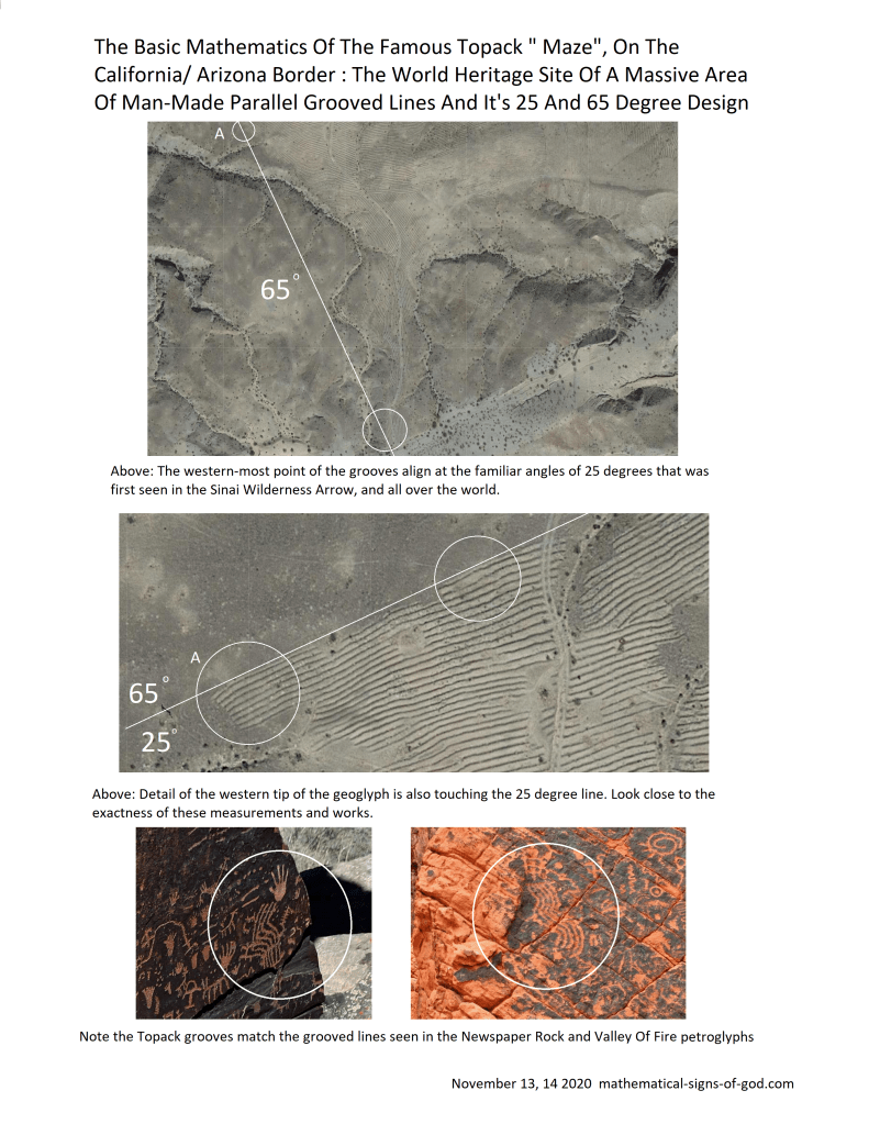 The Basic Math Of The Topack Maze Geoglyphs Of California And Their Aligns To God’s Pattern: Note The Grooved Parallel Lines Match The Newspaper Rock And Valley Of Fire Petroglyph Symbols, Page 1