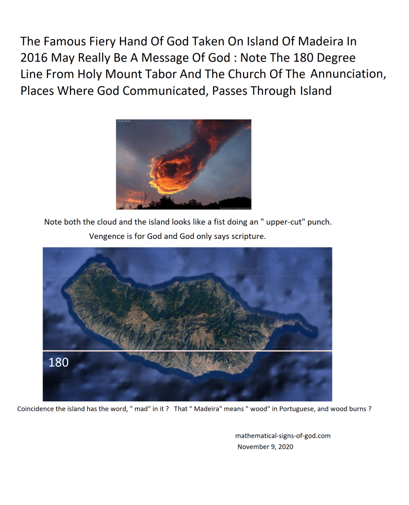 Note Madeira is on the 180 degree line from Holy Mount Tabor And The Church of the Annunciation, Nazareth, both places where God communicating a message to the world.