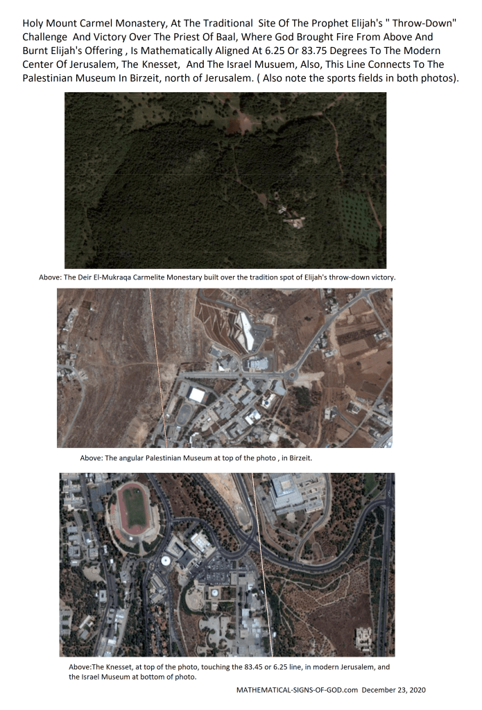 24 Dec 2020 by God's Math Pattern of the Heavens and Earth Holy Mount Carmel 6.25 Or 83.75 Align To The Knesset In Modern Jerusalem, Also Align Of Israel Museum And The Palestinian Museum ! Merry Christmas ! Image Uncategorized Leave a comment Share this: Click to share on X (Opens in new window) X Click to share on Facebook (Opens in new window) Facebook Like Loading... Related