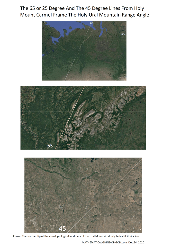24 Dec 2020 by God's Math Pattern of the Heavens and Earth Mount Carmel 65 Degree Line And 45 Degree Line Frame The Angular Ural Mountain Range In Russia Image Uncategorized Leave a comment Share this: Click to share on X (Opens in new window) X Click to share on Facebook (Opens in new window) Facebook Like Loading... Related