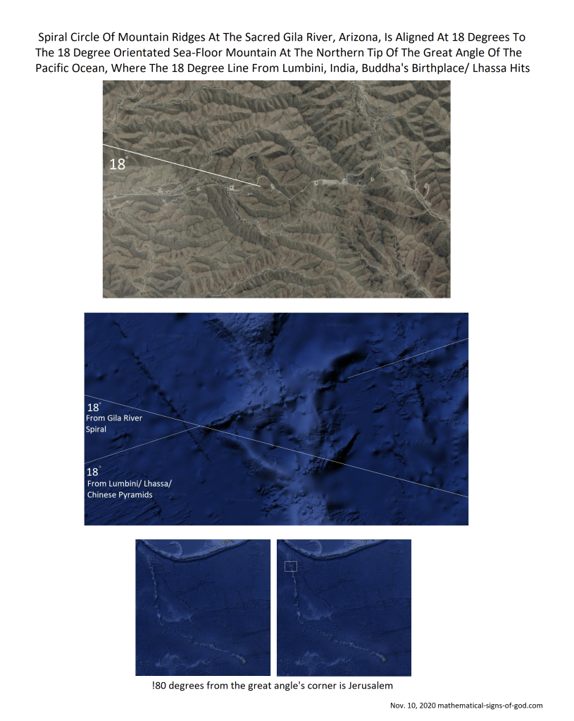 Spiral Circle Of Sacred Gila River, Arizona 18 Degree Line Intersects With The 18 Line Of Buddha’s Birthplace/ Lhassa/ China’s Pyramid Valley, At The 18 Degree Orientated Ocean-Floor Mountain Range Of The Great Angle Of The Pacific Ocean