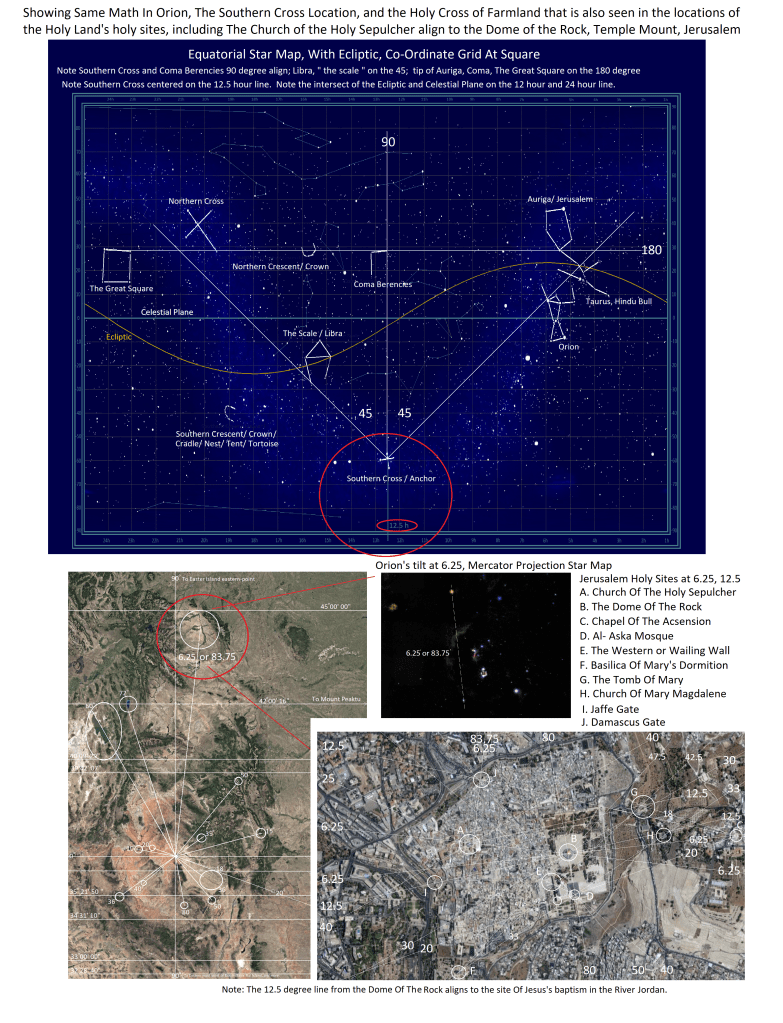 Showing The 6.25 Tilt Of Orion Constellation In Mercator Projection Star Map, Same Angle As The Church Of The Holy Sepulcher To The Dome Of The Rock and The Church Of The Ascension In Jerusalem