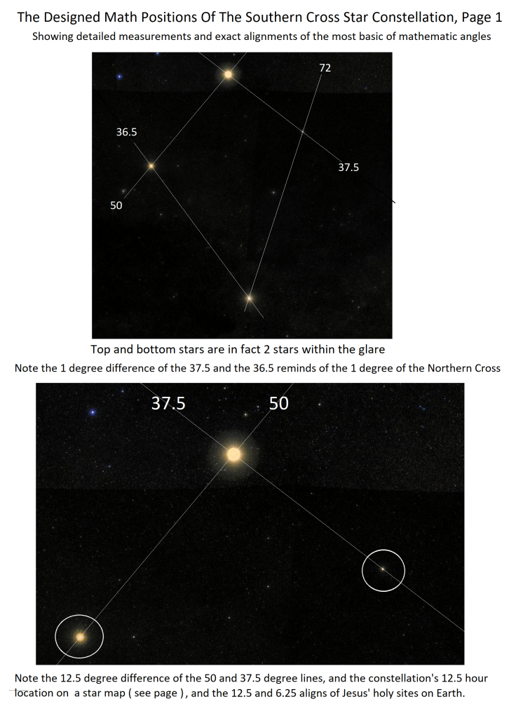 15 Nov 2021 by God's Math Pattern of the Heavens and Earth New : The Designed Positions Of The Stars Of The Southern Cross Constellation With A 12.5 Degree Matching It’s 12.5 Hour Location On Star Map Image Uncategorized Leave a comment Share this: Click to share on X (Opens in new window) X Click to share on Facebook (Opens in new window) Facebook Like Loading... Related