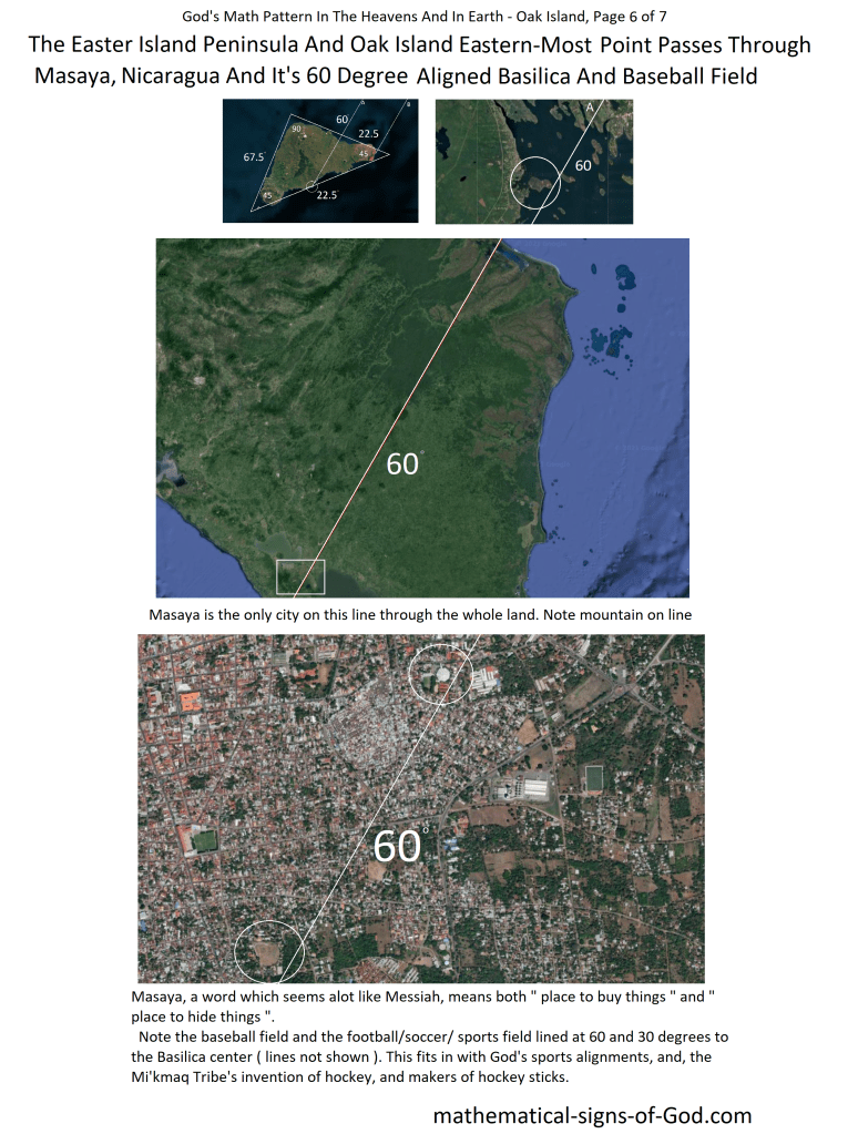 6. Oak Island Eastern-Most Point And Easter Island Peninsula 60 Degree Line Through City Of Masaya, Nicaragua ; Which Spells Similar To Messiah, Means ” Place To Hide Things “