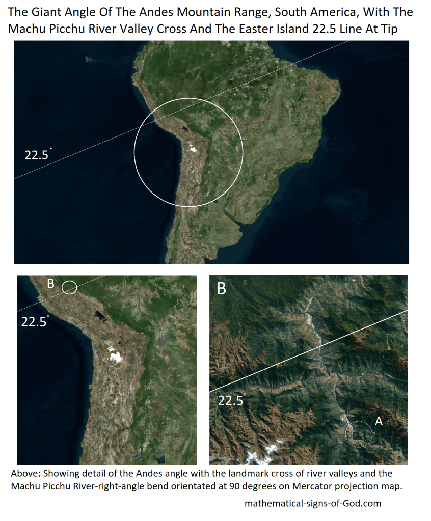 The Giant Angle Of The Andes Mountain Range Of South America, With The Machu Picchu River Valley Cross And The 22.5 Degree Line From Easter Island At It’s North Tip