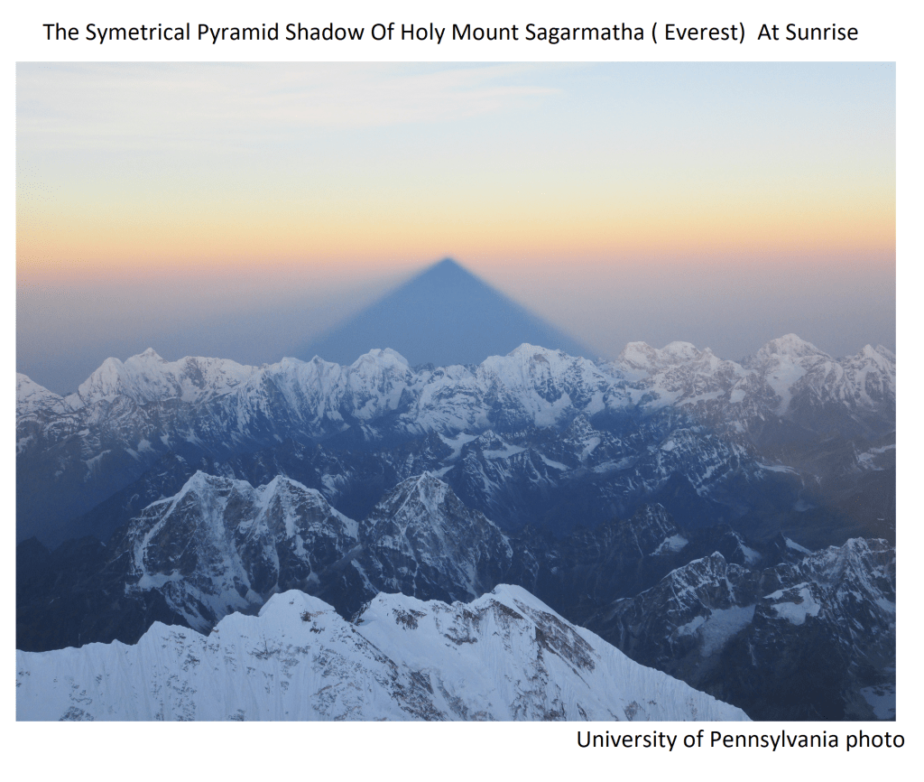 12 Dec 2021 by God's Math Pattern of the Heavens and Earth God’s Art Work : The Symmetrical And Straight-Lined Pyramid Shadow Of Holy Mount Sagarmatha ( Everest) At Sunrise Image Uncategorized Leave a comment
