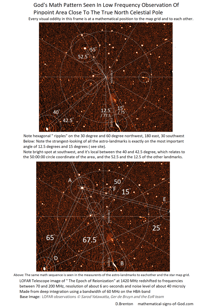 17 Feb 202220 Feb 2022 by God's Math Pattern of the Heavens and Earth Celestial North Pole Low Frequency Telescope Observation Shows Astro-Landmarks Positioned At Intelligent, Basic Math Angles Of God’s Pattern Uncategorized celestial north, LOFAR telescope Leave a comment