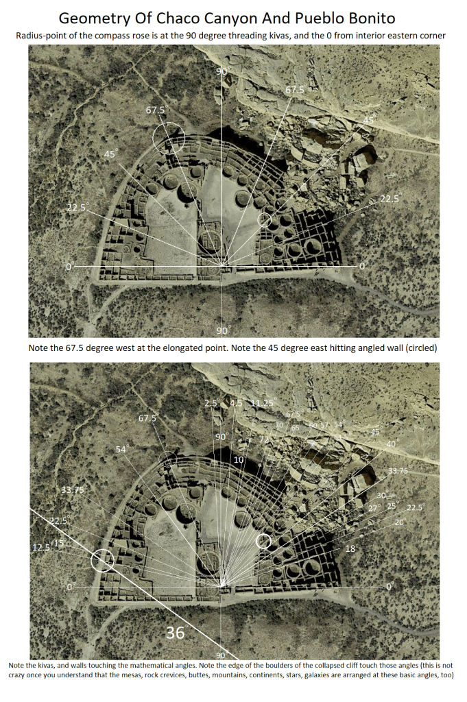 24 Feb 2022 by God's Math Pattern of the Heavens and Earth Chaco Canyon, Pueblo Bonito Divine Geometry : The 36 Degree Line From The Holy Mountain Mathematical Center Hits The 12.5 Degree Of The Bonito Geometry Image Uncategorized Chaco Canyon, Pueblo Bonito Leave a comment