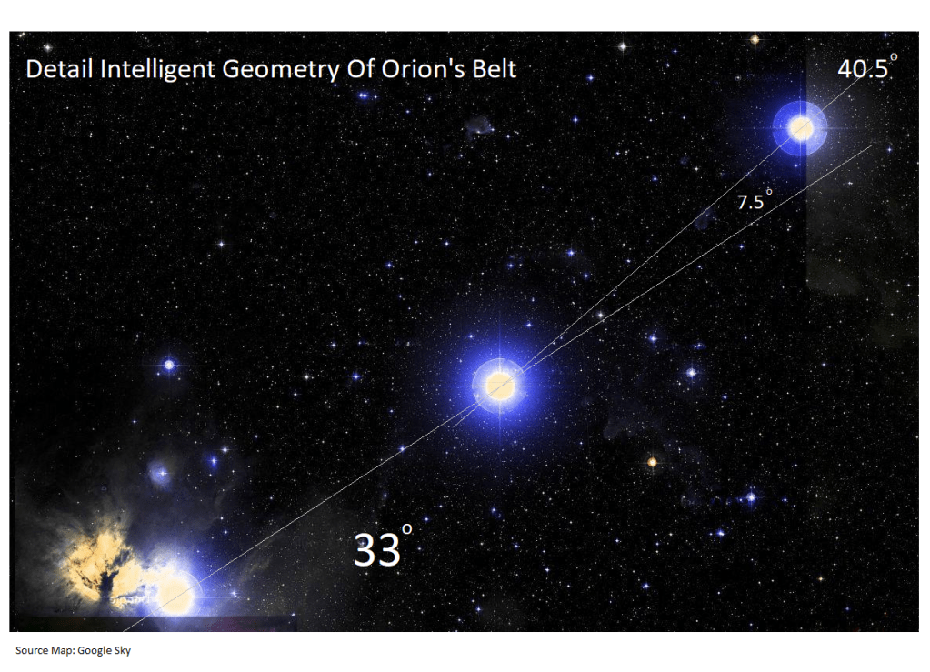 Orion’s Belt At 33 Degrees In A Mercator Projection Star Map: Note The 7.5 Degree Offset Of The Third Star