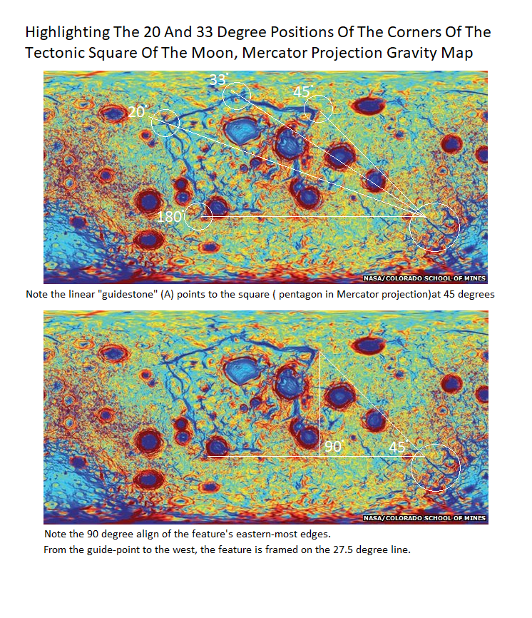 8 Aug 2022 by God's Math Pattern of the Heavens and Earth Moon Gravity Map Shows Corners Of The Geometric Tectonic Ridge At The Basic Angles: Note The 33 Degree Hits The Northern Point Image Uncategorized Grail Moon Gravity Map, Moon Tectonic Leave a comment