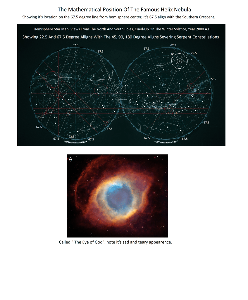 16 Sep 2022 by God's Math Pattern of the Heavens and Earth The Famous ” Eye of God ” Nebula, On The 67.5 Degree Line From Map Center, Cued-Up At Winter Solstice, View From The South Pole Image Uncategorized Helix Nebula Leave a comment