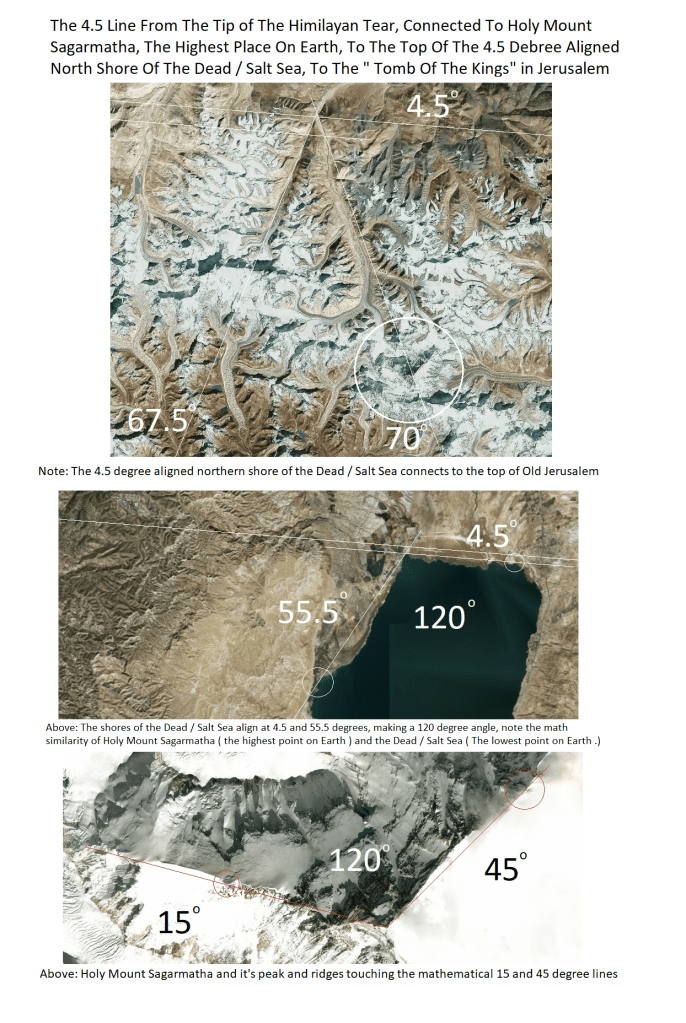3 Oct 2022 by God's Math Pattern of the Heavens and Earth The 4.5 Degree From The Apex Of The Himalayan Tear, Note The 4.5 Align Of The North Shores Of The Dead/ Salt Sea Image Uncategorized Dead Sea, Himalayas, Salt Sea Leave a comment Share this: Click to share on X (Opens in new window) X Click to share on Facebook (Opens in new window) Facebook Like Loading... Related