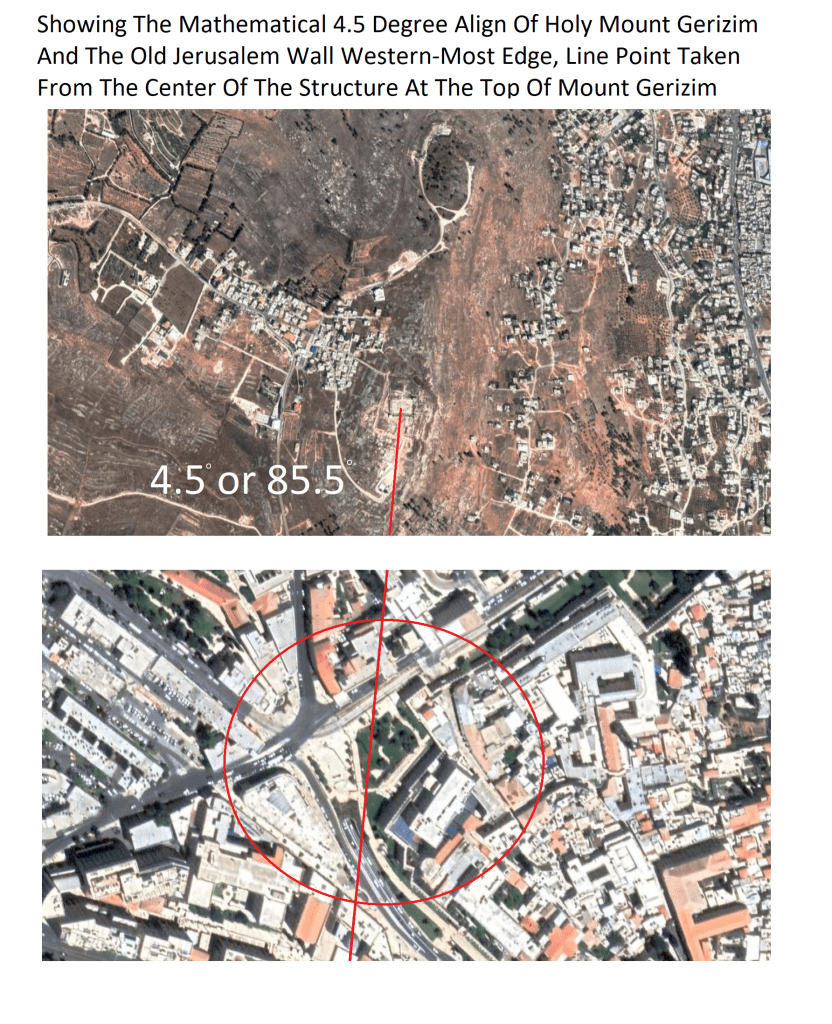 6 Oct 2022 by God's Math Pattern of the Heavens and Earth Holy Mount Gerizim 4.5 Align With The Western-Most Edge Of The Old Jerusalem Wall: Line Point Taken From Center Of Structure At Top Of Gerizim Mount Image Uncategorized Leave a comment Share this: Share on X (Opens in new window) X Share on Facebook (Opens in new window) Facebook Like Loading... Related