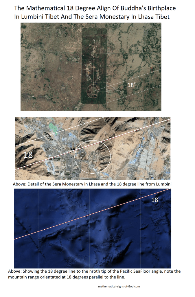 Mathematical 18 Degree From Lumbini, Nepal, Birthplace Of Buddha, To Holy City Of Lhasa Tibet, The Pyramids Of China, And The North Tip Of The Hawaiian Volcanic Chain Angle