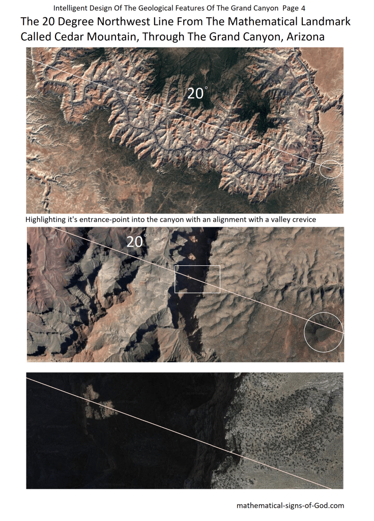 9 Jan 2023 by God's Math Pattern of the Heavens and Earth Grand Canyon Intelligent Design, Introduction, Page 4 : Cedar Mountain Radius-Point 20 Degree Line Image Uncategorized Leave a comment Share this: Click to share on X (Opens in new window) X Click to share on Facebook (Opens in new window) Facebook Like Loading... Related