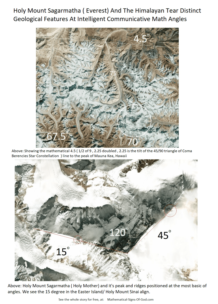 25 May 202428 May 2024 by God's Math Pattern of the Heavens and Earth Highest Point In The World, Holy Mount Sagarmatha (Everest), Geological Features And It’s Position At Intelligent Angles of 15 and 45 Degrees Image Uncategorized Leave a comment Share this: Click to share on X (Opens in new window) X Click to share on Facebook (Opens in new window) Facebook Like Loading... Related