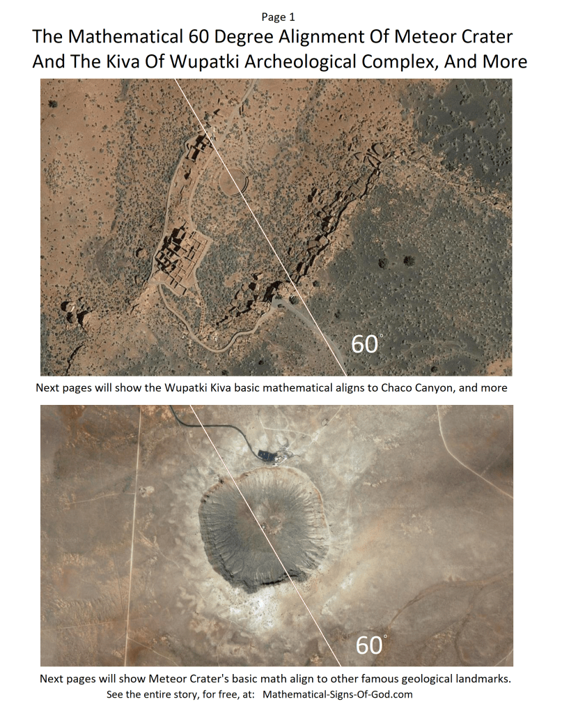 7 May 2025 by God's Math Pattern of the Heavens and Earth Wapatki Great Kiva 60 degrees aligned with the center of Meteor Crater, Page 2 Image Uncategorized Leave a comment Share this: Click to share on X (Opens in new window) X Click to share on Facebook (Opens in new window) Facebook Like Loading... Related