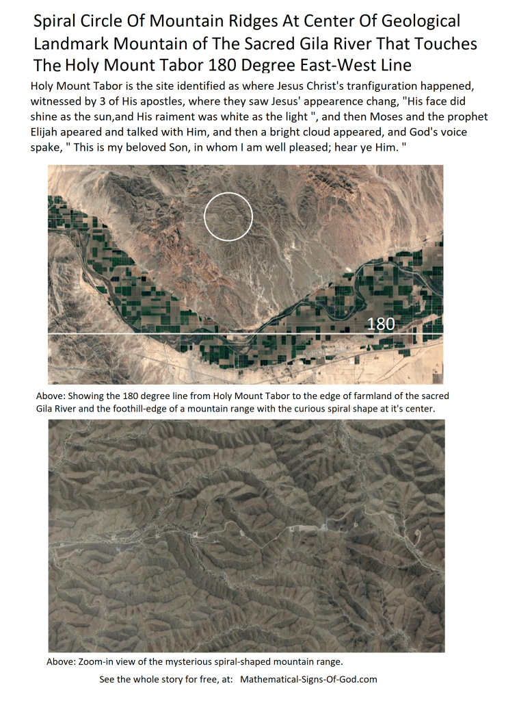 180 Degree Line From Holy Mount Tabor, The Site of Jesus’s Transfiguration And Meeting With Moses And Elijah, Points To The Discovery Of The Spiral-Shape Of Mountains And Valleys Of The Sacred Gila River In Arizona, Page 1