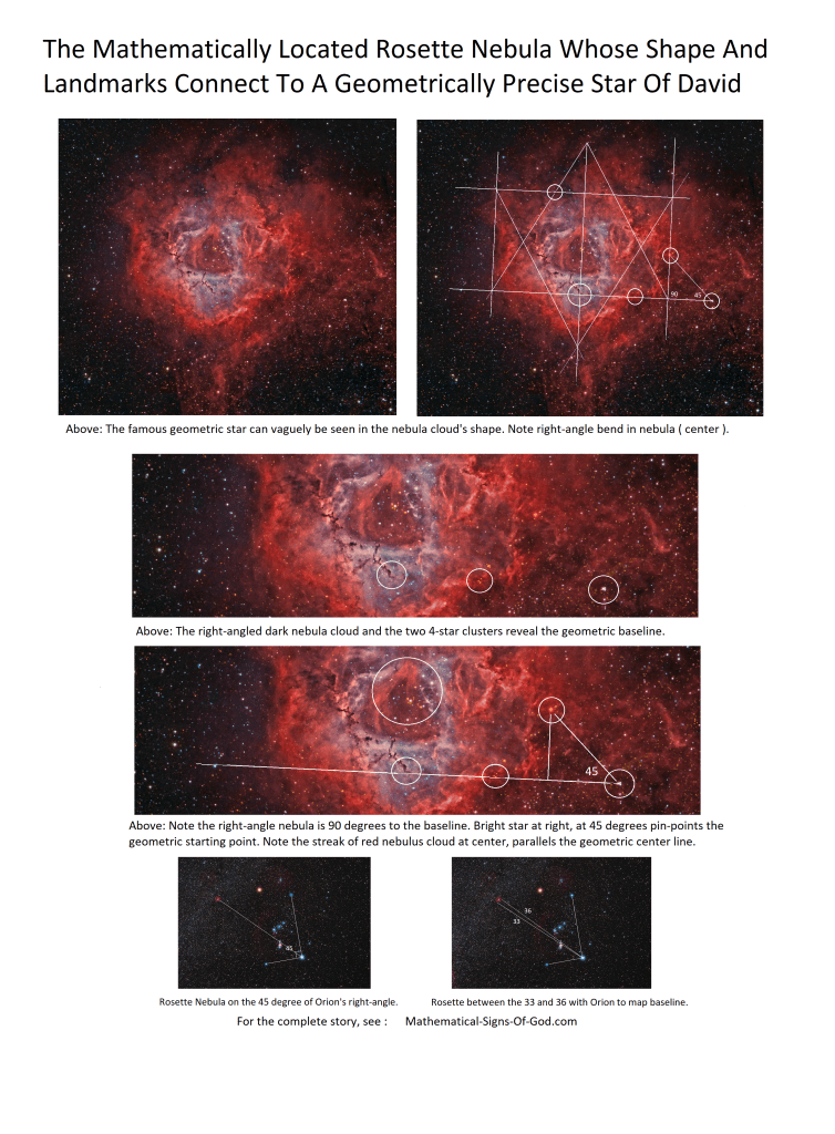 Rosette Nebula’s “Landmarks” Align To Form A Perfect Star Of Israel That Is Perfectly Centered With The Nebula’s Features. Step 1, showing baseline tilted at 1.5 degrees