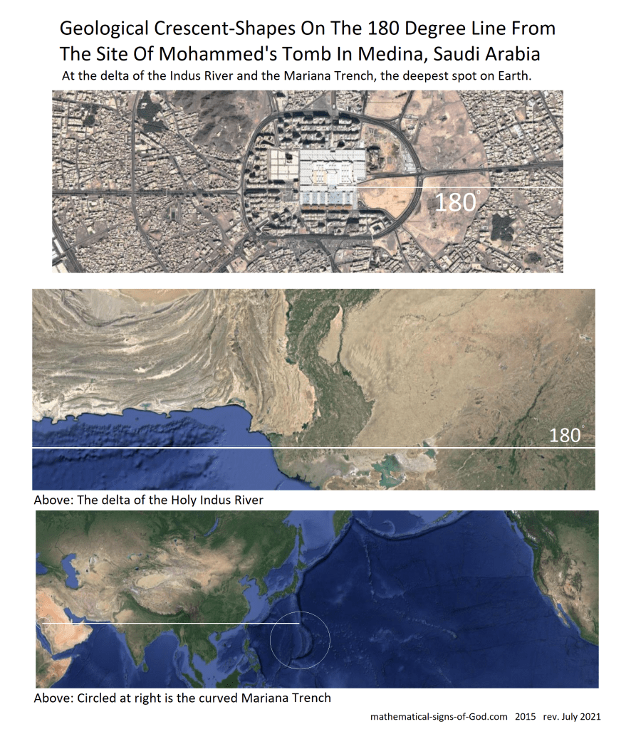 1 Sep 2022 by God's Math Pattern of the Heavens and Earth Showing The 180 Degree From Mohammed’s Tomb In Medina To Crescent-Shaped Geological Features Image Uncategorized Indus River, Mariana Trench, Medina, Mohammed Leave a comment